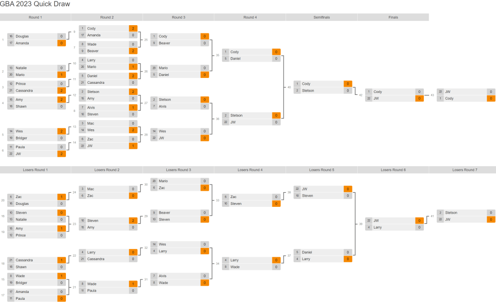 Bridger Tucker 4 – 4 -8 – 7 = 23