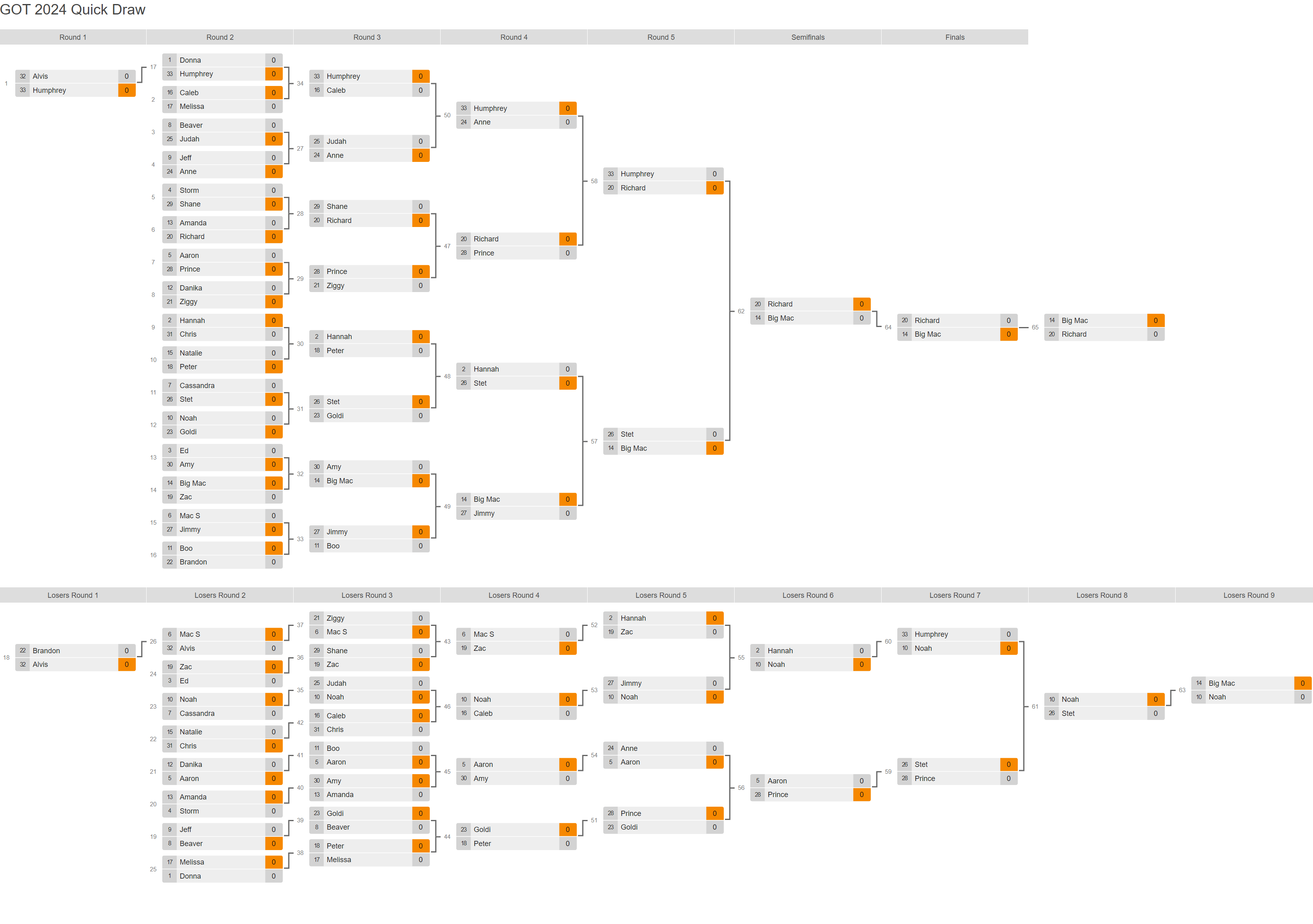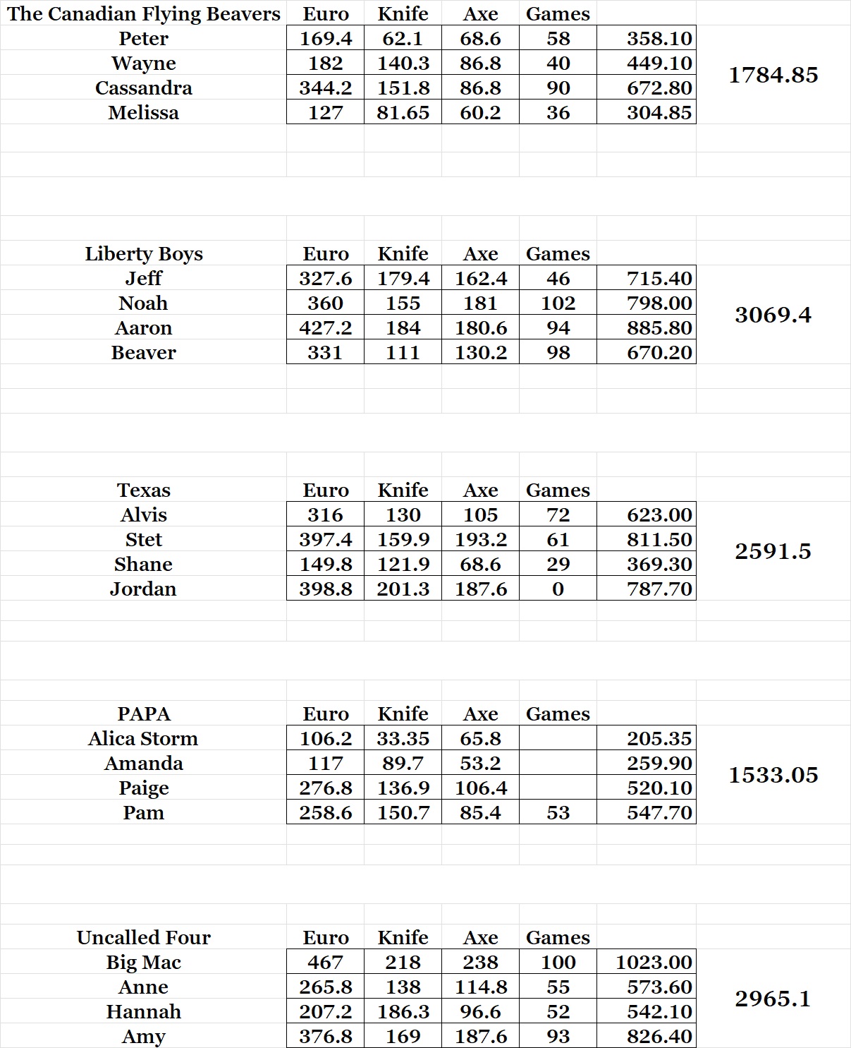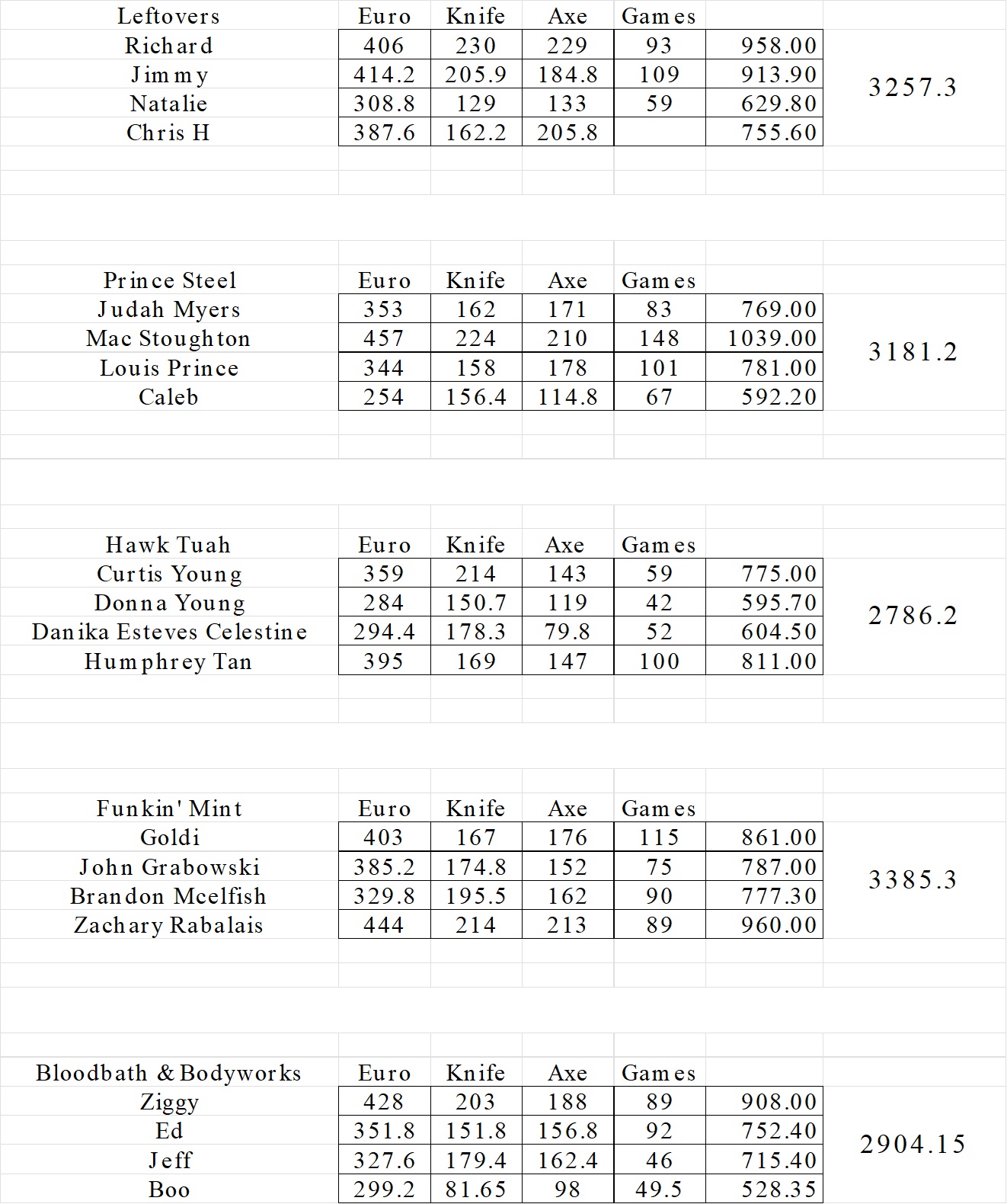 Brandon “Knifecrest” Mcelfish 13 – 64 – – 8 – 5 – 90