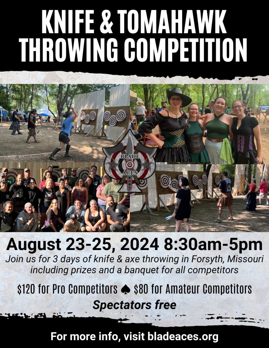 The Ultimate Knife and Ax Throwing Championships April 26-28, 2019 at the Superhero Foundry, 3155 W. Post Rd in beautiful Las Vegas Nevada. Thursday, April 25 Final deadline for Early Registration is at midnight Throwers and scorekeepers meeting at 7pm at Superhero Foundry Friday, April 26 Warm ups start at 7:30 a.m. at the outdoorContinue reading 2019 Blade Aces ‘Game of Throws II’